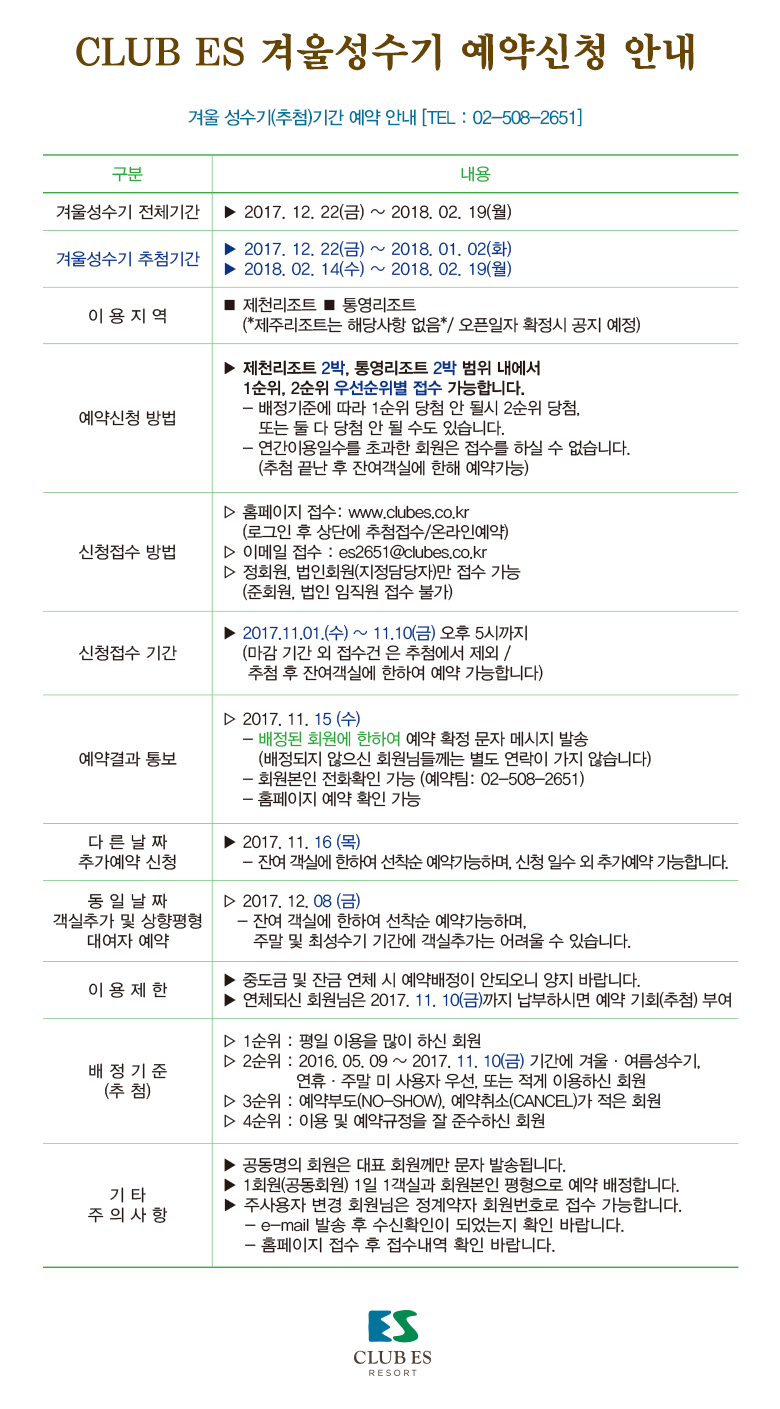 [공지] 이에스리조트 겨울성수기 기간